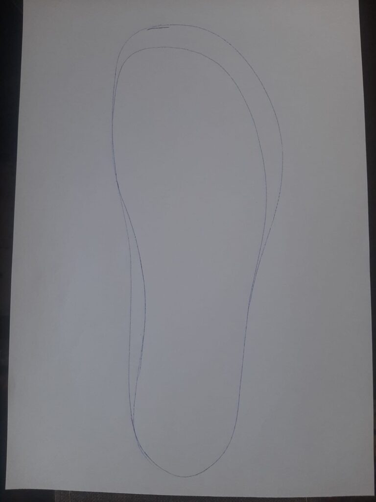 Hneď na začiatku som si porovnala obkreslené kopyto s mojimi obkresmi, ktoré používam na bazkopytové topánky, a potom so stielkou čižmičky vyrobené u Bena. Bola som v šoku z toho rozdielu, takže som si nebola istá, či mi budú moje balerínky sedieť. Každopádne, čižmičky by som brala v špičke širšie, takže som bola rada, že je kopyto Kraft v šírke L širšie než Benovo.